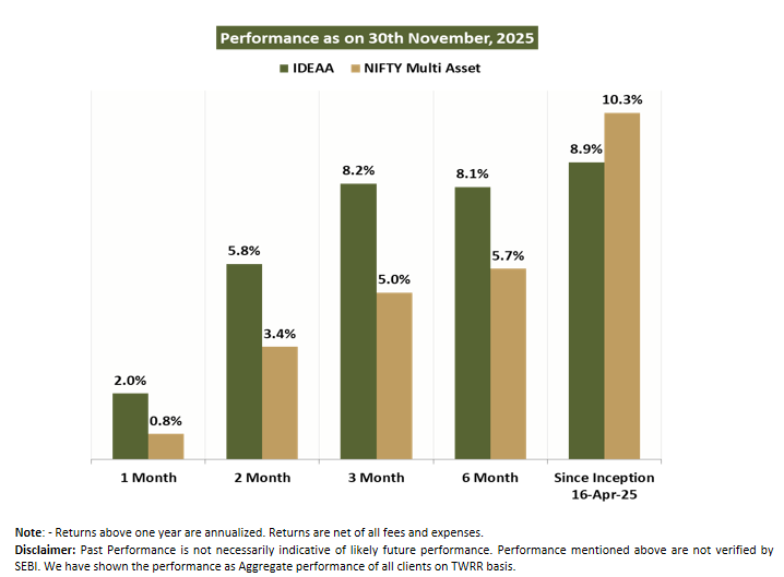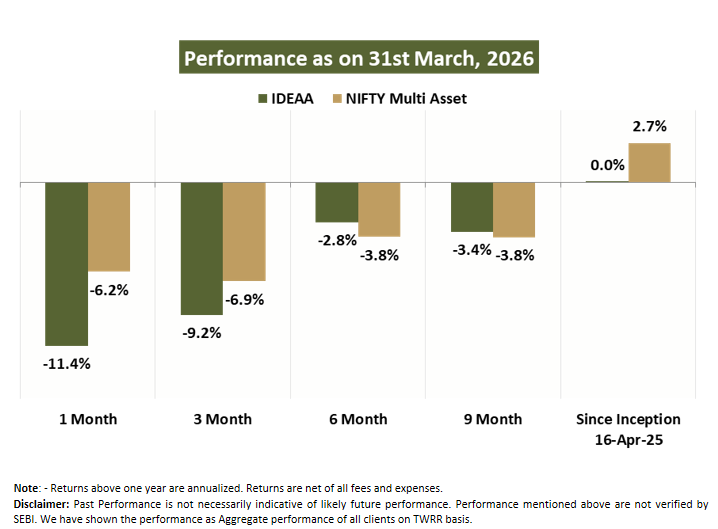 Name of the Portfolio Manager: Anand Rathi Advisors Ltd. SEBI registration no. INP000000282. Registered office address: Express Zone, A Wing,10th Floor, Western Express Highway, Goregaon (East ), Mumbai - 400 063. Disclaimer: Issued by Anand Rathi Advisors Limited (ARAL), which is regulated by SEBI. Neither the information nor any opinion expressed constitutes an offer, or an invitation to make an offer, to buy or sell any securities or any options, futures or other derivatives related to such securities ("related investments"). ARAL and its affiliates may trade for their own accounts as market maker / jobber and/or arbitrageur in any securities of this issuer(s) or in related investments, and may be on the opposite side of public orders. ARAL, its affiliates, directors, officers, and employees may have a long or short position in any securities of this issuer(s) or in related investments. ARAL or its affiliates may from time to time perform investment banking or other services for, or solicit investment banking or other business from, any entity mentioned in this report. This website does not have regard to the specific investment objectives, financial situation and the particular needs of any specific person who may read this. Investors should seek financial advice regarding the appropriateness of investing in any securities or investment strategies discussed or recommended in this report and should understand that statements regarding future prospects may not be realized. Investors should note that income from such securities, if any, may fluctuate and that each security's price or value may rise or fall. Past performance is not necessarily a guide to future performance. Foreign currency rates of exchange may adversely affect the value, price or income of any security or related investment mentioned in this report. Returns above one year are annualized. Returns are net of fees and expenses. We have shown the performance as Aggregate performance of all clients on TWRR basis